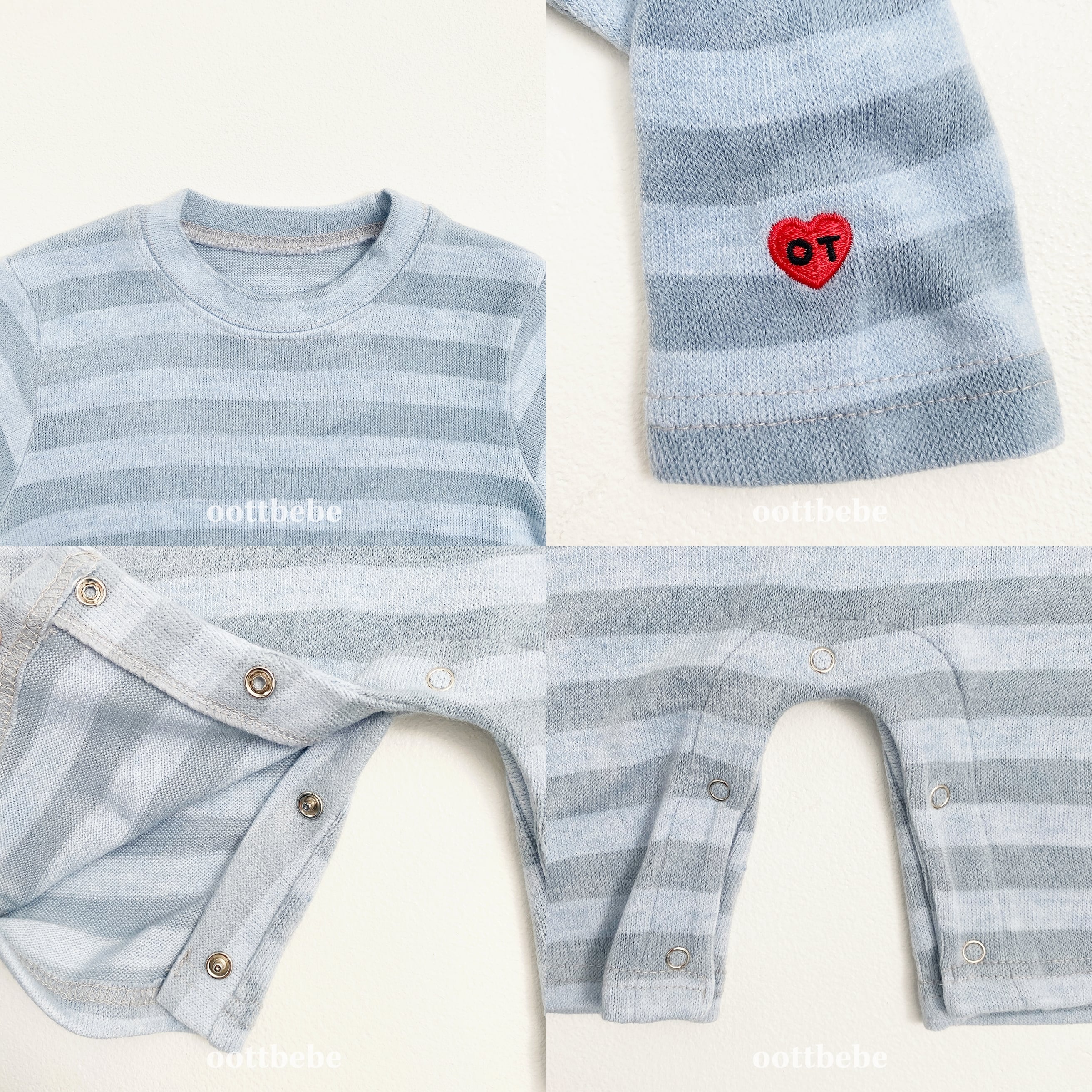 OOTTBEBE25秋)(BEBE)Mixボーダーニットロンパース カバーオール